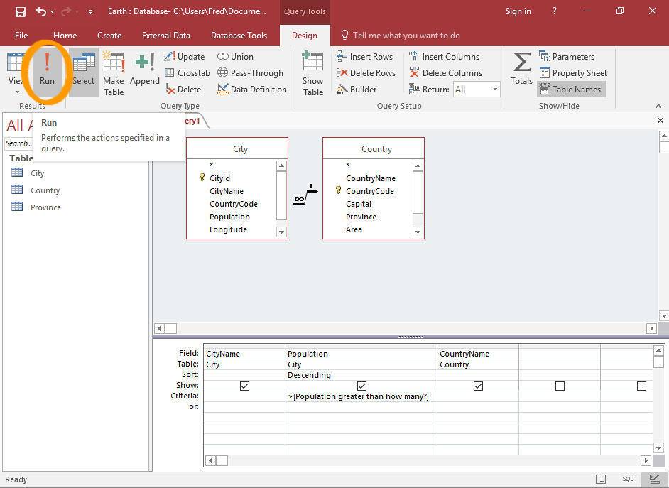In the above example, the data date given will be used to filter the results in the query to only those albums that are released after the data given. Here's the complete guide on how to create a parameter query.